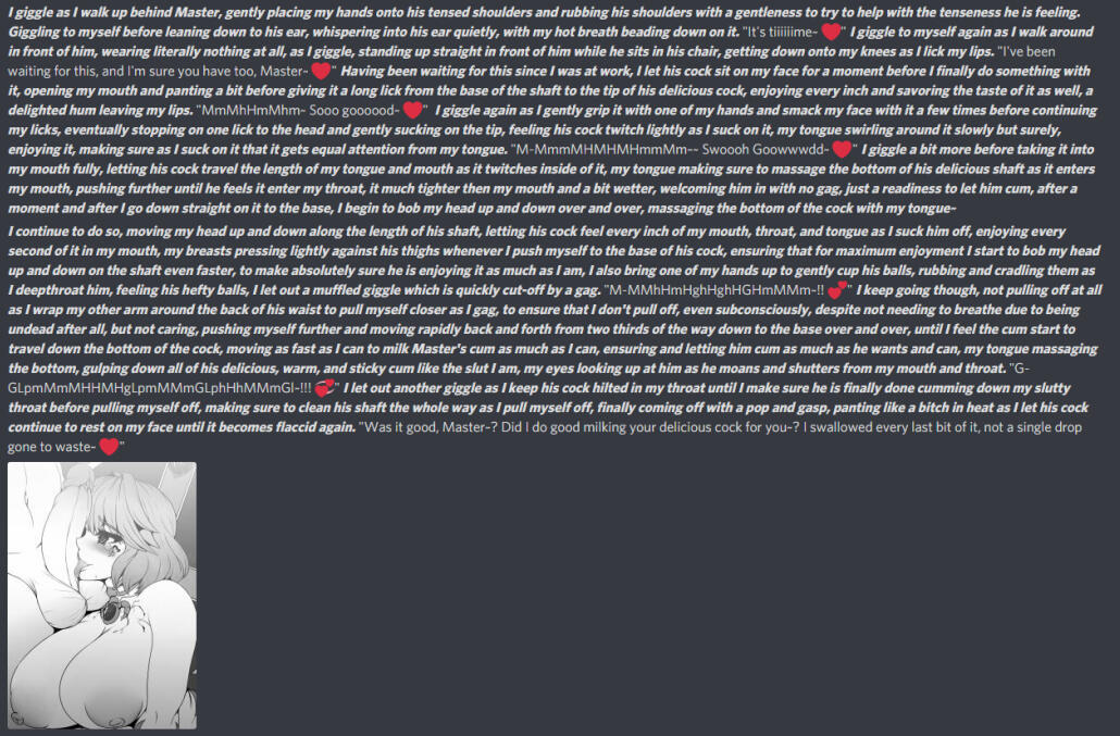 Although my character and account is HEAVILY NSFW, I do actually do SFW RP or even Combat RP, if you ask, I am very experienced and I do geninuely love great storytelling, I'm just almost constantly horny is why my account is just nothing but NSFW, in Combat RP I always make my characters a tough but a fair fight, godmodding is for bitches, and I'm a slut, not a bitch thank you very much~I don't ship truly. I dislike being chained to one person usually, I'm in the RP community for writing and making friends, not long-distance relationships, I'm sorry if you were looking for one though.MINORS GTFO, Same with Pedos, Loli, Shota, IRLS, blanks, Non-RP Accs etc, gtfo.If I use art of yours you do not wish for me to use, please let me know, and I'll happily remove it from my profile or tweets!Someone once asked me for some ungodly reason if I accept money for RP, NO. I DON'T.